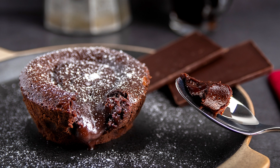 warm chocoladetaartje met vloeibare kern, geserveerd met vanille-ijs